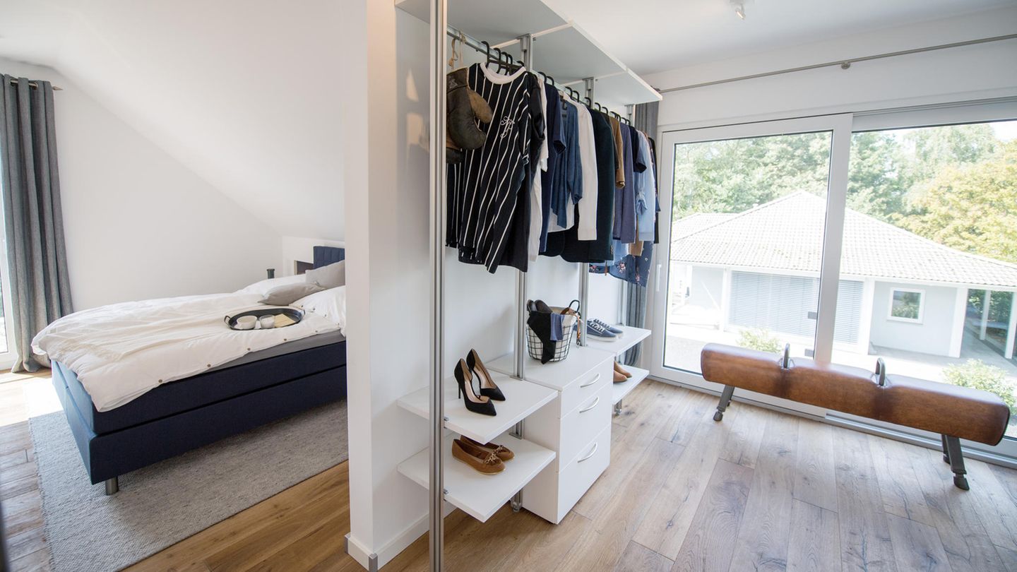 Danach geht es ans Ausmisten. Am besten räumt man wirklich einmal alles raus, was man besitzt. Und dann gilt es zu sortieren. Behalten sollte man nur, was wirklich gefällt, passt und häufig getragen wird. Alles andere kann man getrost verkaufen, spenden oder verschenken. Teile, bei denen man unsicher ist, können erst einmal in einem Karton verschwinden. Vermisst man sie, kann man sie zurückholen, wenn nicht, können sie verkauft oder gespendet werden. Übrigens auch ein guter Tipp: Statt eines Kleiderschranks, in dem man schnell mal den Überblick verliert, lohnt sich ein offenes Teleskop-System, mit dem man immer auf einen Blick sehen kann, was man hat und wie man es kombinieren kann.