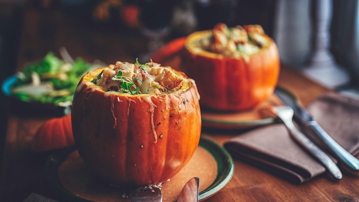 Nachdem der Hokkaido in den letzten Jahren zum Trendgemüse mutiert ist, feierte die Kürbissuppe ihr kulinarisches Comeback. Ob mit Sahne oder Kokosmilch, Karotten oder Ingwer – schnell folgte eine neue Kreation der anderen. An sich ist da auch nichts verkehrt dran, wenn Sie gerne Suppe essen. Denn gerade in der nasskalten Jahreszeit ist der Kürbis ein regelrechter Vitaminbooster, der Ihr Immunsystem stärken kann. Aber muss es deshalb wirklich jedes Jahr die gleiche Suppe sein oder gibt es noch andere Möglichkeiten, das orangerote Gemüse zu einem leckeren Gericht zu verarbeiten? Immerhin hat der Hokkaido den Vorteil, dass er komplett essbar ist. Warum sich also nicht die ganze Schnippelei sparen und den Kürbis einfach aushöhlen und füllen? Im Folgenden finden Sie zwei leckere Rezeptideen – eine mit und eine ohne Fleisch.
