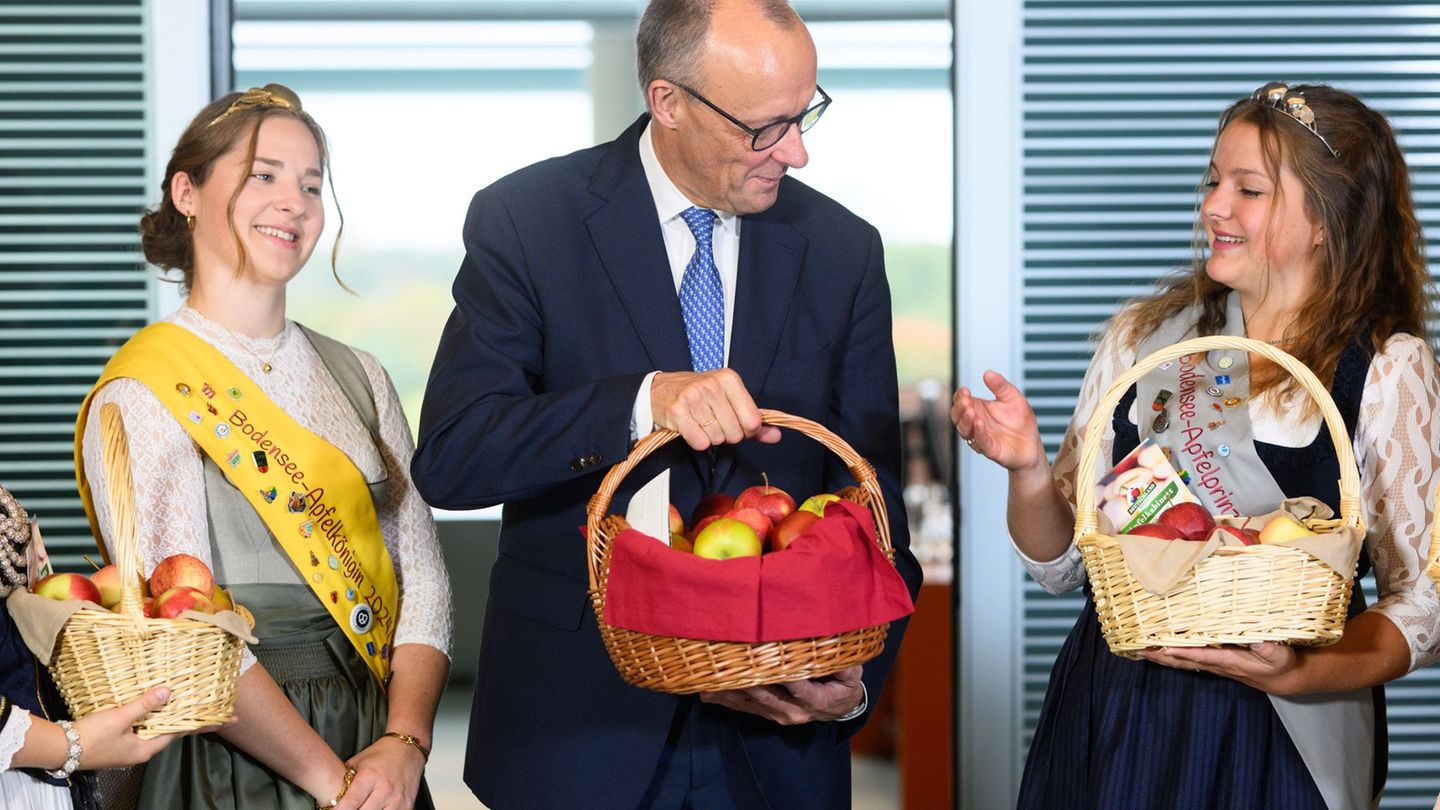 Ein Hauch von Herbst im Kanzleramt: Bundeskanzler Friedrich Merz hat die Apfel- und Blütenköniginnen aus den wichtigsten deutschen Obstregionen zum jährlichen sogenannten Apfelkabinett empfangen. Die fast 50 Jahre alte Veranstaltung, angestoßen von einer Initiative der Bundesvereinigung der Erzeugerorganisationen Obst und Gemüse, soll die Bedeutung heimischer Obstproduktion hervorheben, wie die Initiative mitteilte. Gerade in Zeiten von Importabhängigkeit sei auf die Arbeit der heimischen Obstbauern hinzuweisen. Zu diesem Anlass fanden diverse Obstkörbe mit frischen Äpfeln ihren Weg ins Kanzleramt.