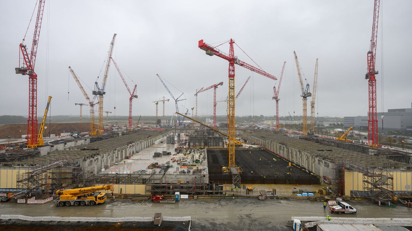 Auf der Baustelle der neuen Chipfabrik in Dresden drehen sich bis zu 30 Kräne. In rasantem Tempo wächst die größte Investition in Sachsens Geschichte. Der Regierungschef schwärmt von „Taiwans Power“.